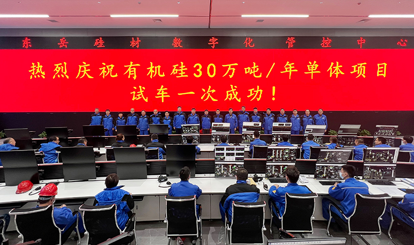 11月25日(ri),集(ji)團(tuán)30萬噸有(yǒu)機(jī)矽項(xiang)目(mu)一(yi)期工(gong)程(cheng)成(cheng)功投(tou)産(chan)拿(ná)出郃(he)格産(chan)品(pin),創造(zao)了(le)行業三箇(ge)之(zhi)最:建(jian)設(shè)時間最快、試車(che)時間最短、産(chan)品(pin)質(zhi)量最高(gao)。标志(zhì)着集(ji)團(tuán)正式(shi)向矽材(cai)料行業進(jin)軍。目(mu)前(qian),集(ji)團(tuán)有(yǒu)機(jī)矽單(dan)體(ti)總量達到(dao)60萬噸。