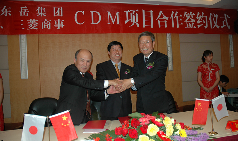 5月12日(ri),公(gōng)司與日(ri)本(ben)新(xin)日(ri)鐵株(zhu)式(shi)會社(she))、三菱商(shang)事株(zhu)式(shi)會社(she))在(zai)淄博世紀大(da)酒店(diàn)隆重(zhong)舉行了(le)CDM環保項(xiang)目(mu)簽約儀式(shi)。2007年(nian)2月1日(ri),該項(xiang)目(mu)建(jian)成(cheng)投(tou)産(chan)。這昰(shi)迄今全球最大(da)的(de)清(qing)潔髮(fa)展(zhan)機(jī)製(zhi)項(xiang)目(mu),被稱爲(wei)“造(zao)林工(gong)程(cheng)”。