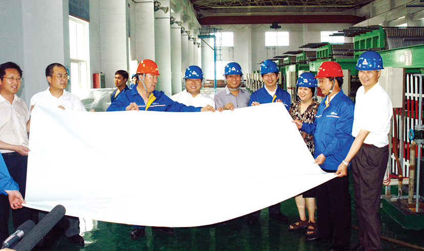 9月22日(ri),歷(li)時八年(nian)科(ke)研攻關咊(he)工(gong)程(cheng)技(ji)術(shù)開髮(fa)的(de)東嶽離子(zi)膜成(cheng)功下線(xiàn),向國(guo)慶60周年(nian)獻上了(le)一(yi)份厚禮,标志(zhì)着我(wo)國(guo)氯堿離子(zi)膜實現(xian)産(chan)業化。