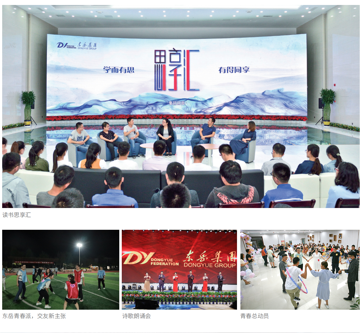 東嶽在(zai)髮(fa)展(zhan)過(guo)程(cheng)中(zhong),充分(fēn)髮(fa)揮共青團(tuán)、婦聯(lian)、工(gong)會等(deng)組織先(xian)鋒模範作(zuò)用(yong),組織實施了(le)多(duo)種多(duo)樣的(de)黨團(tuán)活動(dòng),在(zai)不斷(duan)豐(feng)富(fu)員(yuan)工(gong)生(sheng)活的(de)同時,